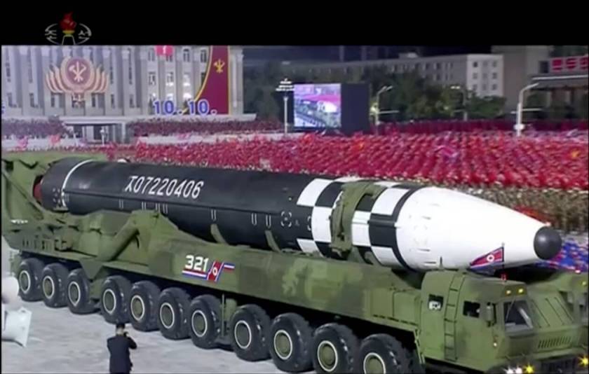 Αναλυτές ανέφεραν ότι η Βόρεια Κορέα παρουσίασε σήμερα, για πρώτη φορά, έναν μεγάλο διηπειρωτικό βαλλιστικό πύραυλο (ICBM) στη στρατιωτική παρέλαση.