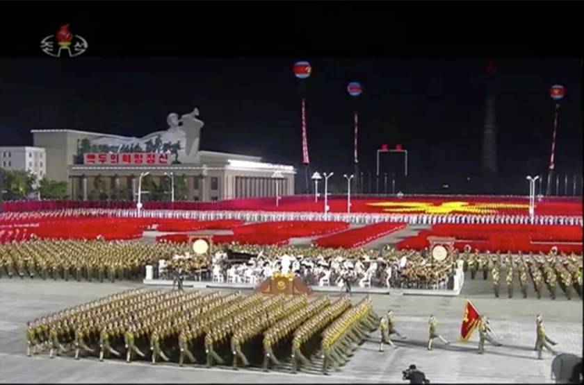 Μια γιγαντιαία στρατιωτική παρέλαση πραγματοποιήθηκε σήμερα στην Πιονγκγιάνγκ, προτού ακόμη να ξημερώσει, με την ευκαιρία της συμπλήρωσης 75 χρόνων από την ίδρυση του κυβερνώντος Κόμματος των Εργατών, με τον ηγέτη της Βόρειας Κορέας να απευθύνει διάγγελμα στους πολίτες.