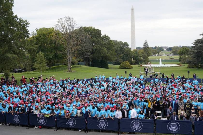 Σε αυτή τη δημόσια εκδήλωση που έμοιαζε με προεκλογική συγκέντρωση στον Λευκό Οίκο και ενώπιον ενός πλήθους που φώναζε «Τέσσερα χρόνια ακόμα!», ο Τραμπ χωρίς να φορά μάσκα διαβεβαίωσε ότι ο κορωνοϊός «θα εξαφανιστεί πολύ σύντομα» και «ότι αρχίζει να εξαφανίζεται».