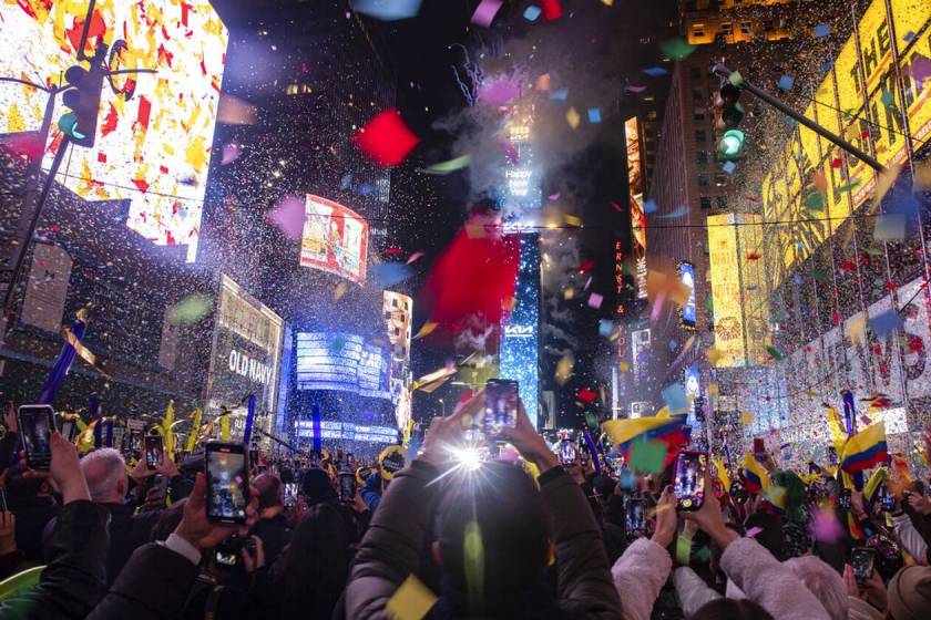 Η φωτισμένη μπάλα από φύλλα κρυστάλλου Waterford κύλησε τα μεσάνυχτα στην Τάιμς Σκουέρ, αλλά μόνο 15.000 θεατές επιτρεπόταν να βρίσκονται στην περιοχή απ' όπου μπορούσαν να παρακολουθήσουν το θέαμα, αντί για 58.000 συνήθως.