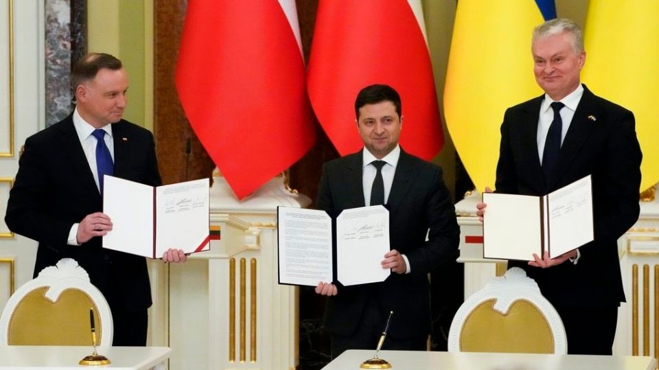 «Τονίζουμε πως, δεδομένης της σημαντικής προόδου στην εφαρμογή της Συμφωνίας Σύνδεσης και εσωτερικών μεταρρυθμίσεων, καθώς και των τρεχουσών προκλήσεων ασφαλείας, η Ουκρανία αξίζει καθεστώς υποψήφιας προς ένταξη στην ΕΕ χώρας και η Λιθουανία και η Πολωνία θα υποστηρίξουν την Ουκρανία στην επίτευξη αυτού του σκοπού» αναφέρεται στην τριμερή διακήρυξη που υπεγράφη στο Κίεβο.
