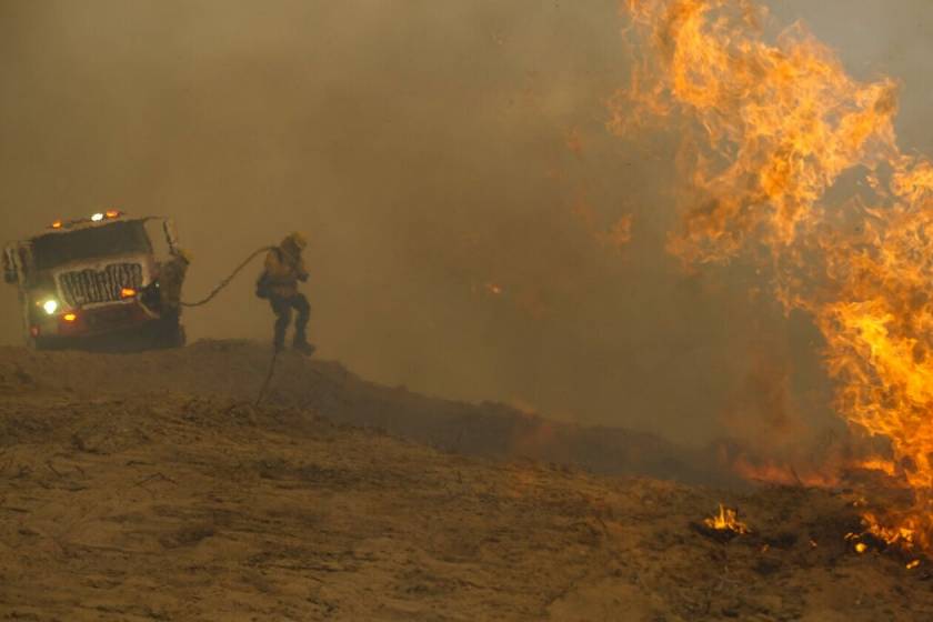 Την ώρα που η Καλιφόρνια κι ένα μεγάλο τμήμα δυτικά των ΗΠΑ είναι αντιμέτωπες με ένα πρωτόγνωρο κύμα καύσωνα, η πυρκαγιά που μαίνεται στα περίχωρα του Λος Άντζελες διπλασιάστηκε σε μέγεθος μέσα σε λιγότερο από 24 ώρες, ανακοίνωσε η πυροσβεστική.