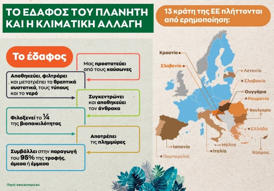 To έδαφος επηρεάζεται σημαντικά από τις συνέπειες της κλιματικής αλλαγής, όπως επισημαίνει η επιστημονική κοινότητα.