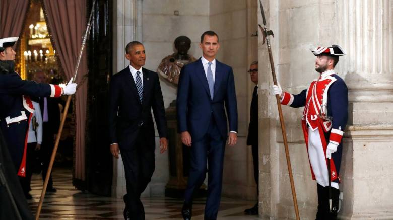 Ο Μπαράκ Ομπάμα, έγινε δεκτός από τον βασιλιά της Ισπανίας, Φίλιππο, ενώ πριν επιστρέψει στη ναυτική βάση της Ρότα, στη νότια Ισπανία, και αναχωρήσει για τις ΗΠΑ θα συναντήσει τον απερχόμενο πρωθυπουργό Μαριάνο Ραχόι και τους ηγέτες των Podemos και Ciudadanos.