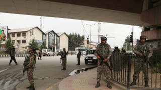 Ινδοί στρατιώτες φρουρούν μετά από δυνατές εκρήξεις που ακούστηκαν στη Σριναγκάρ, στο Κασμίρ που ελέγχεται από την Ινδία