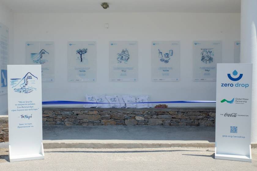 Το «Zero Drop» παρουσιάστηκε κατά τη διάρκεια επιτόπιας επίσκεψης του Γενικού Γραμματέα Φυσικού Περιβάλλοντος και Υδάτων, κ. Πέτρου Βαρελίδη, παρουσία της Δημάρχου του νησιού, κ. Ευθαλίας Παπαδοπούλου, του Βουλευτή Κυκλάδων κ. Φίλιππου Φόρτωμα, της κ. Μαρίας Τζελέπη, Διευθύντριας Εταιρικών Υποθέσεων, Επικοινωνίας και Βιώσιμης Ανάπτυξης, Coca-Cola Hellas, και του Καθηγητή κ. Μιχάλη Σκούλλου, Προέδρου, Global Water Partnership – Mediterranean.
