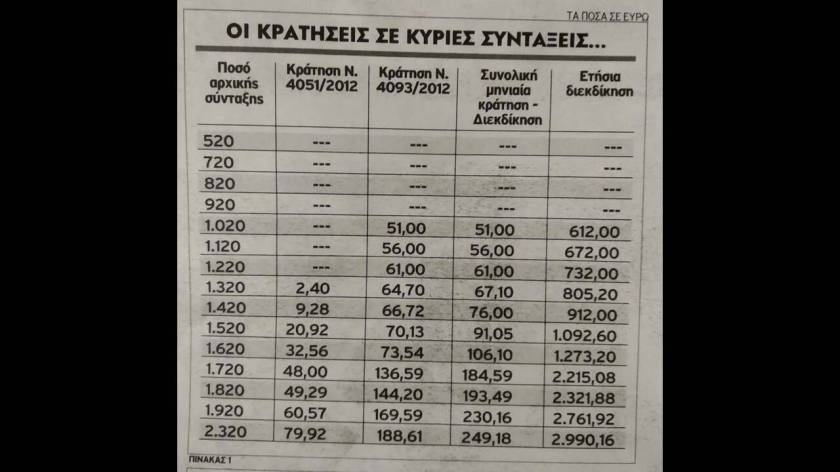 Αντίστοιχα, τα μεγαλύτερα ποσά προκύπτουν για συνταξιούχους με υψηλές συντάξεις ή περισσότερες από δύο συντάξεις.