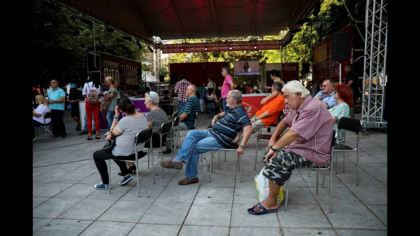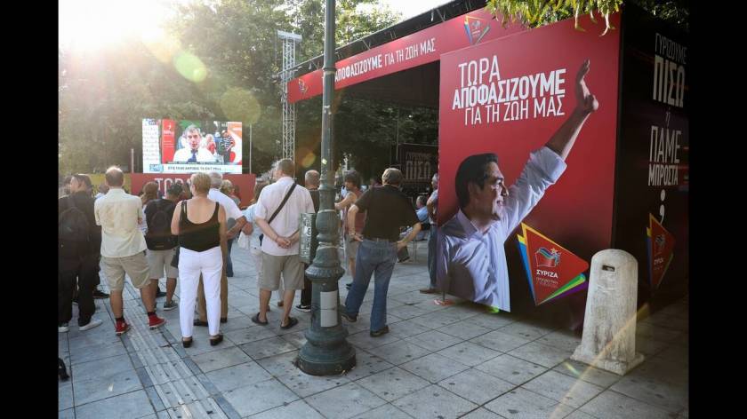 Εικόνες από το εκλογικό κέντρο του ΣΥΡΙΖΑ στην πλατεία Συντάγματος