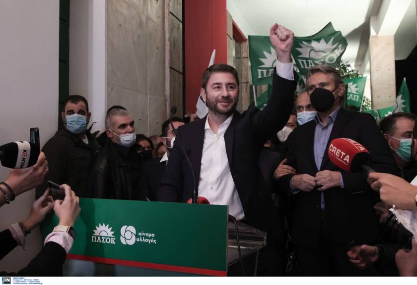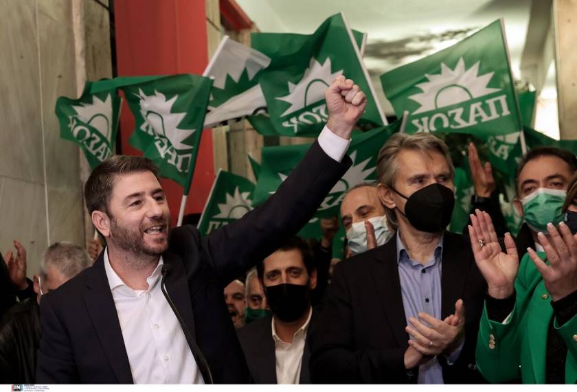 Ο Νίκος Ανδρουλάκης στον β' γύρο της εσωκομματικών εκλογών αναδείχθηκε ο νέος πρόεδρος του Κινήματος Αλλαγής (ΚΙΝΑΛ), με σαρωτική επικράτηση έναντι του Γιώργου Παπανδρέου.