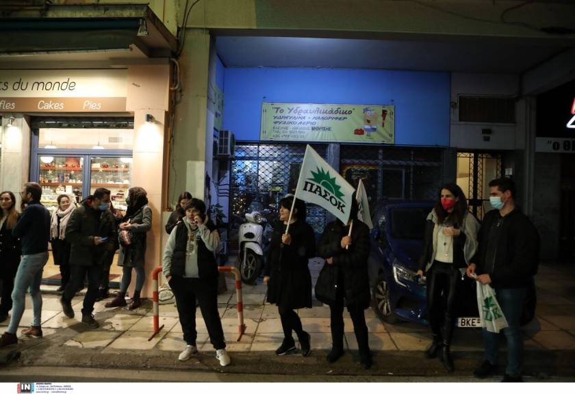 Κρατώντας σημαίες του ΠΑΣΟΚ και με συνθήματα όπως «Το ΠΑΣΟΚ είναι εδώ, ενωμένο, δυνατό», «Η γη το θέλει, ο ήλιος ανατέλλει», οι φίλοι του ΠΑΣΟΚ υποδέχθηκαν την εκλογή του Νίκου Ανδρουλάκη στην προεδρία του ΚΙΝΑΛ.