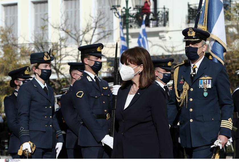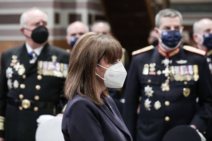 Μετά την δοξολογία, η Κατερίνα Σακελλαροπούλου μετέβη στην Προεδρική Φρουρά για την κοπή της Πρωτοχρονιάτικης πίτας.