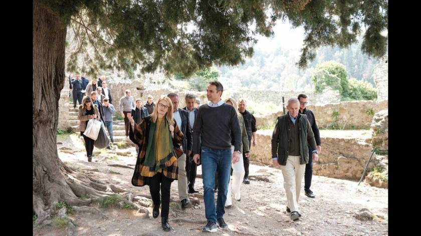 Περιοδεία στη Λακωνία πραγματοποιεί ο Κυριάκος Μητσοτάκης ο οποίος επισκέφθηκε το Κάστρο και το μουσείο του Μυστρά.