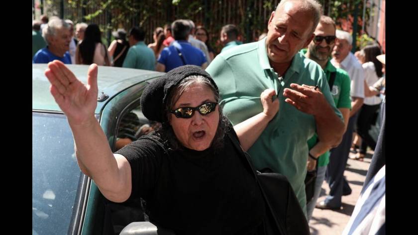 «Ξαναχτύπησε» η Ελένη Λουκά καθώς περίμενε τη Φώφη Γεννηματά έξω από το εκλογικό κέντρο όπου ψήφιζε.