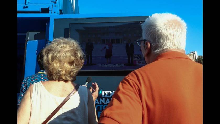 «Aρκετοί τηλεοπτικοί σταθμοί ανέφεραν μετά το κλείσιμο των εκλογικών τμημάτων ότι το κόμμα της αντιπολίτευσης Νέα Δημοκρατία έφτασε περίπου στο 40% των ψήφων.Το αριστερό κόμμα ΣΥΡΙΖΑ του πρωθυπουργού Αλέξη Τσίπρα, έφτασε μόλις το 28,5%».