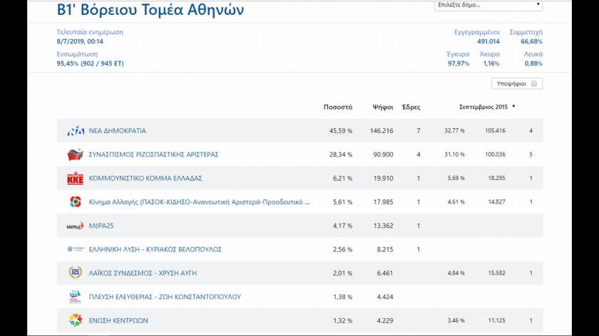 Αποτελέσματα εκλογών 2019: Πώς διαμορφώνεται αυτή την ώρα ο εκλογικός χάρτης