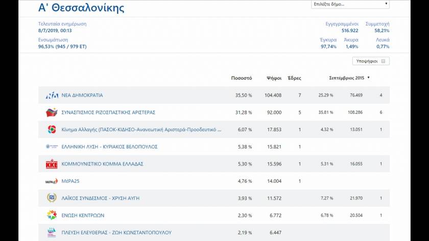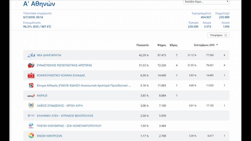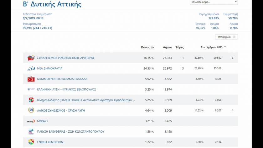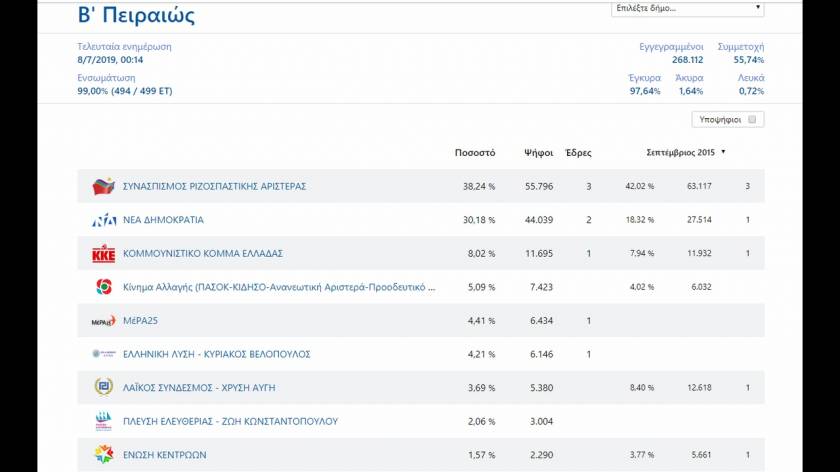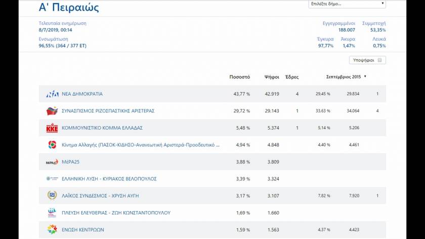 Αποτελέσματα εκλογών 2019: Η ΝΔ κερδίζει 51 από τις 59 εκλογικές περιφέρειες