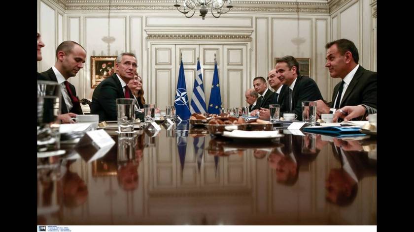Ο κ. Μητσοτάκης ευχαρίστησε τον ΓΓ του ΝΑΤΟ για την υποστήριξη της συμμαχίας στην αντιμετώπιση των μεταναστευτικών ροών και ανέφερε ότι ζήτησε ενεργότερη συμμετοχή της συμμαχίας ενώ ανανέωσαν το ραντεβού τους για τη σύνοδο κορυφής του ΝΑΤΟ το Δεκέμβριο στο Λονδίνο.