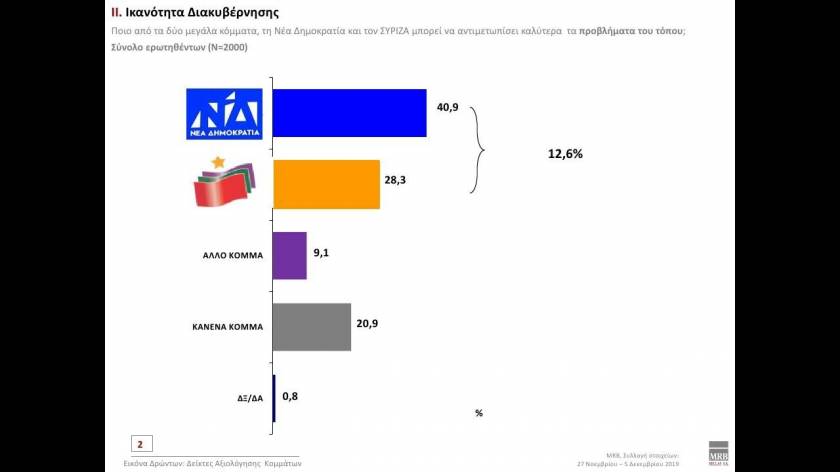 Η έρευνα της MRB πραγματοποιήθηκε το διάστημα 27 Νοεμβρίου με 5 Δεκεμβρίου, σε δείγμα 2.000 ερωτηθέντων, με δικαίωμα ψήφου, με τη μέθοδο των προσωπικών συνεντεύξεων.