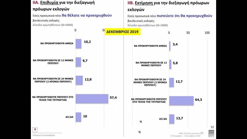 «Πότε θα θέλατε να προκηρυχθούν βουλευτικές εκλογές», το 57,4% απαντά «να προκηρυχθούν περίπου στο τέλος της τετραετίας».