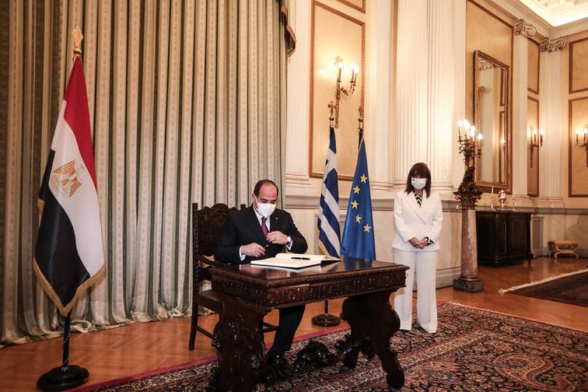 Από την πλευρά του, ο Πρόεδρος της Αιγύπτου Αμπντέλ Φατάχ αλ Σίσι, κατά την αντιφώνησή του, αφού ευχαρίστησε την Πρόεδρο της Ελληνικής Δημοκρατίας Κατερίνα Σακελλαροπούλου για την φιλοξενία και την θερμή υποδοχή τόνισε: «Η Αίγυπτος και η Ελλάδα είναι από τους παλαιότερους, πιο αρχαίους και αυθεντικούς πολιτισμούς που είχαν εξέχοντα ρόλο και αδιαμφισβήτητη επιρροή στην πρόοδο του ανθρώπινου πολιτισμού, στους διάφορους τομείς της επιστήμης, των τεχνών και της λογοτεχνίας».
