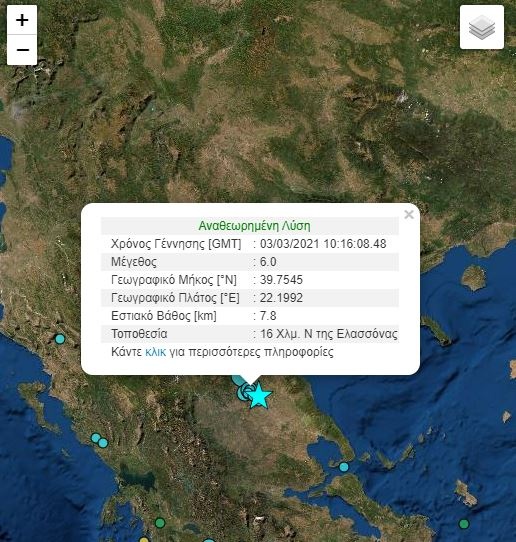 Το επίκεντρο της δόνησης υπολογίζεται 16χλμ νότια της Ελασσόνας.