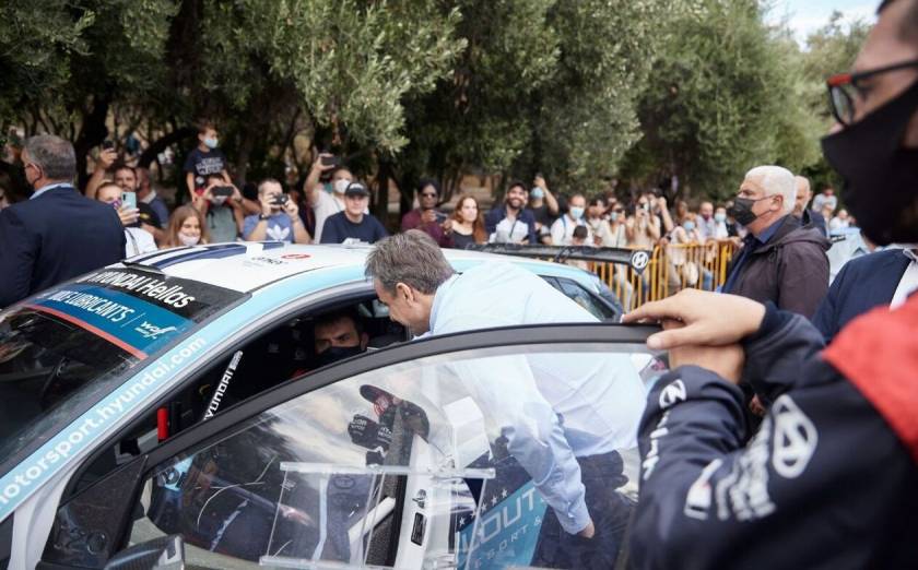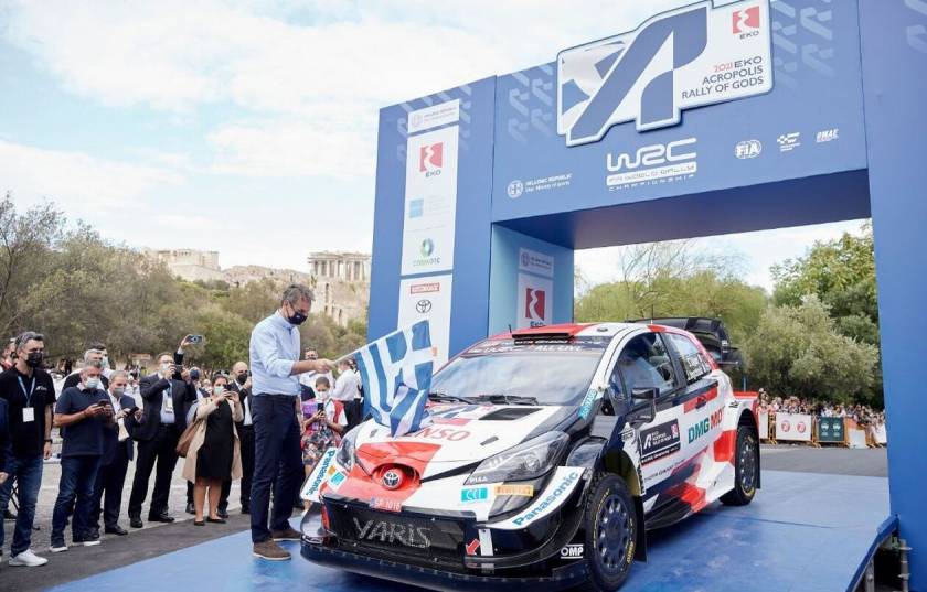 Την έναρξη του ΕΚΟ Acropolis Rally of Gods 2021, που επιστρέφει στη χώρα μας ύστερα από οκτώ χρόνια απουσίας, κήρυξε το απόγευμα ο πρωθυπουργός Κυριάκος Μητσοτάκης, σηκώνοντας την ελληνική σημαία για το αυτοκίνητο με οδηγό τον επτά φορές παγκόσμιο πρωταθλητή Σεμπαστιάν Οζιέ, που ήταν το πρώτο στη ράμπα για την εκκίνηση.