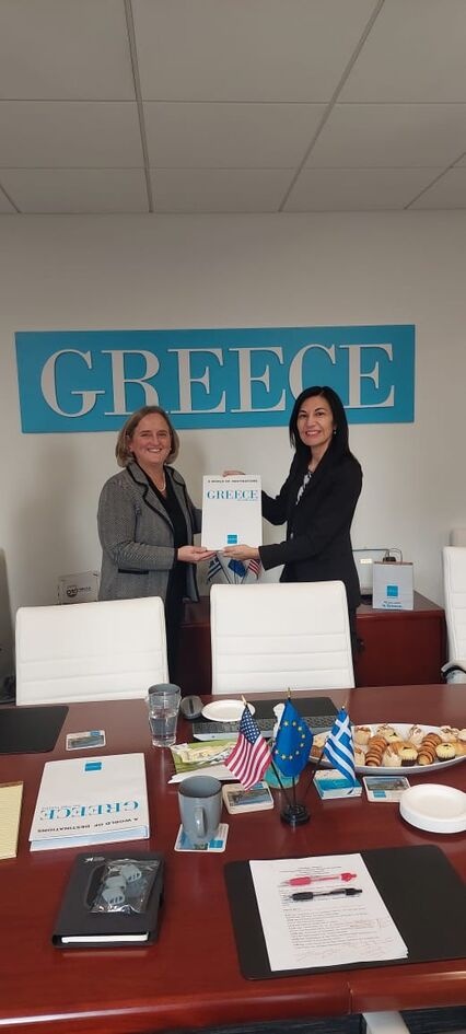 Έπειτα, η κα. Catherine Prather ενημέρωσε κα. Ολυμπία Αναστασοπούλου για το ρόλο και την αποστολή του ΝΤΑ και συζητήσανε τους τρόπους με τους οποίους ο Ε.Ο.Τ. Β. Αμερικής και το Υπουργείο Τουρισμού μπορούν να ενισχύσουν την προβολή της Ελλάδος στους Tour Operators/μέλη του ΝΤΑ. Η κα. Prather θα παραδώσει μάλιστα λίστα δεδομένων με στατιστικά στοιχεία για την Ελλάδα που αφορούν στις ειδικές μορφές τουρισμού.