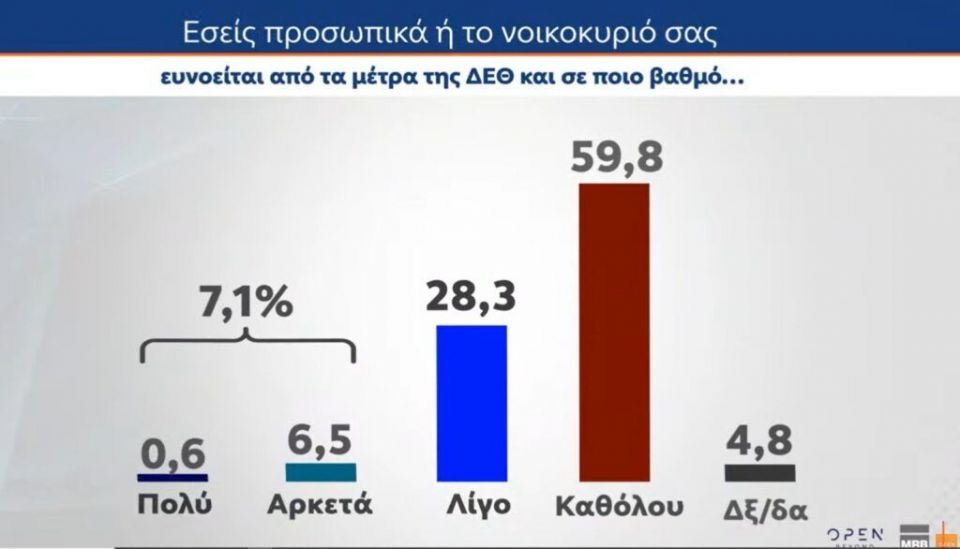 Στο ερώτημα «Εσείς προσωπικά ή το νοικοκυριό σας ευνοείται από τα μέτρα της ΔΕΘ και σε ποιο βαθμό» οι απαντήσεις που καταγράφονται είναι: