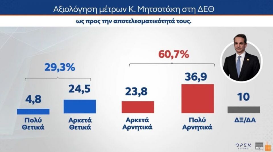 Ειδικότερα, στην αξιολόγηση των μέτρων του Κ. Μητσοτάκη στη ΔΕΘ ως προς την αποτελεσματικότητά τους καταγράφονται τα εξής: