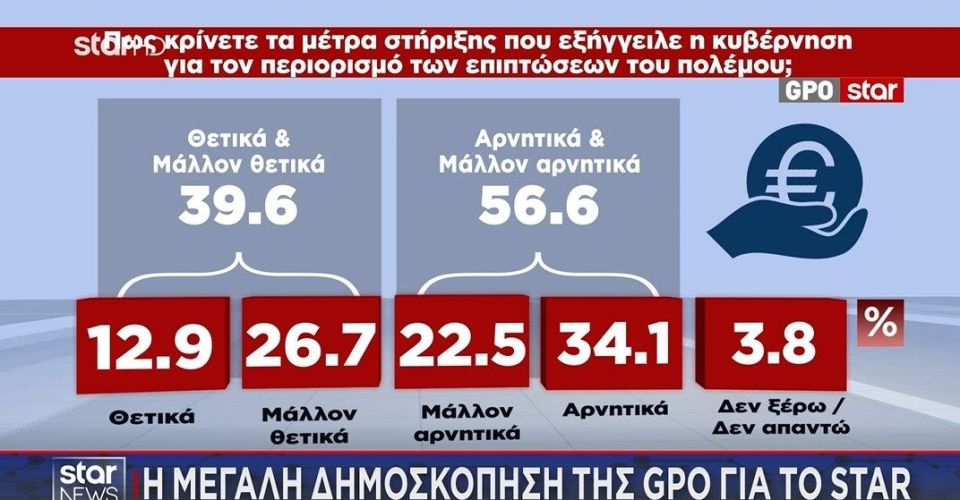 Στο ερώτημα «Πως κρίνετε τα μέτρα στήριξης που εξήγγειλε η κυβέρνηση για τον περιορισμό των επιπτώσεων του πολέμου» οι ερωτηθέντες απαντούν: