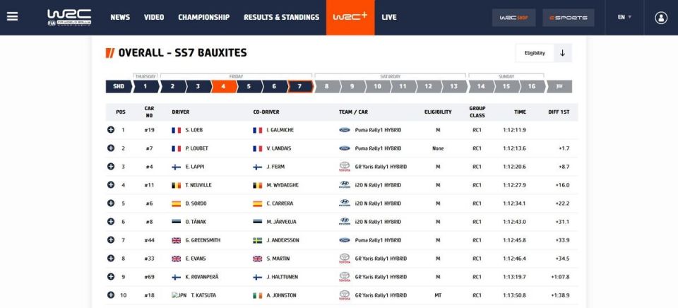 Ο πολύπειρος Loeb με το Ford Puma Rally 1 βρέθηκε επικεφαλής στην τελευταία ειδική όταν όχι μόνο κάλυψε τη διαφορά του από τον Pierre-Louis Loubet, αλλά δημιούργησε και μια 1,7 δευτερολέπτων υπέρ του.