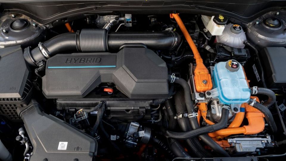 Όπως προαναφέραμε το νέο Santa Fe είναι διαθέσιμο είτε ως πλήρως υβριδικό είτε ως plug-in υβριδικό. Η υβριδική του έκδοση αποτελείται από το νέο κινητήρα SmartStream T-GDi των 1.600 κυβικών, έναν ηλεκτροκινητήρα 44,2 kW και μια μπαταρία 1,49 kWh. Η συνδυαστική απόδοση φτάνει τους 230 ίππους και τα 350 Nm, και η κίνηση μεταδίδεται είτε στους εμπρός είτε σε όλους τους τροχούς, μέσω ενός στάνταρ καινούργιου αυτόματου κιβωτίου 6 σχέσεων.