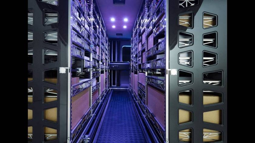 Η απουσία κεντρικής κονσόλα επιτρέπει τη μετατόπιση της θέσης του οδηγού προς τα εμπρός ώστε να αυξηθεί και άλλο το ωφέλιμο μήκος του χώρου φόρτωσης, που ουσιαστικά φιλοξενεί μια κατασκευή από ράφια, που μπαίνει (και βγαίνει βέβαια) ολοκληρη και ήδη φορτωμένη. Μάλιστα τα πάκετα είναι τοποθετημένα με τέτοιο τρόπο ώστε η διανομή τους να γίνεται με βάση τη βέλτιστη διαδρομή, τόσο από πλευράς χρόνου όσο και εξοικόμησης καυσίμου, που υπολογίζει το σύστημα πλοήγησης.