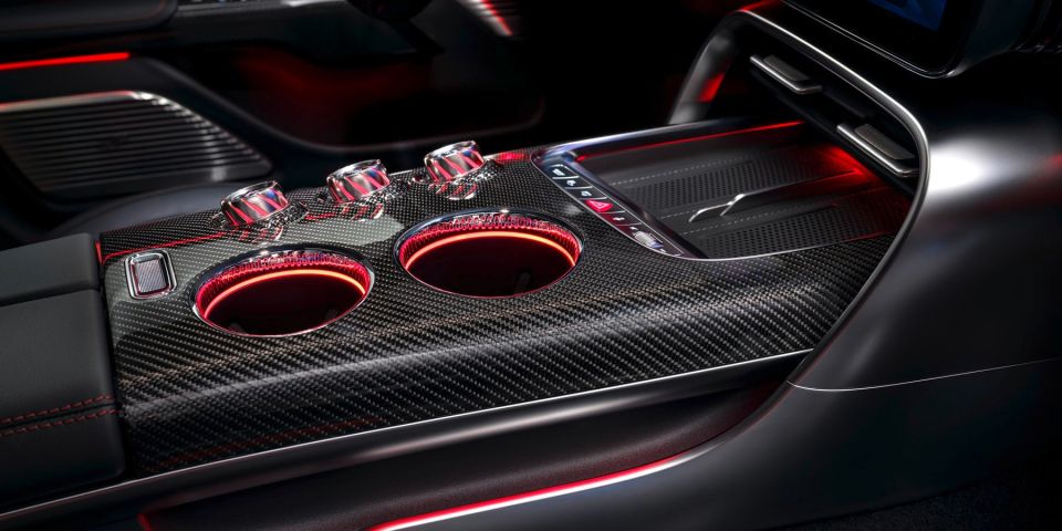 Στην κεντρική κονσόλα υπάρχουν τρεις περιστροφικοί διακόπτες μέσω των οποίων ο οδηγός μπορεί να ρυθμίζει παραμέτρους όπως η απόκριση των ηλεκτροκινητήρων, τα προγράμματα οδήγησης ή τα χαρακτηριστικά της ανάρτησης.