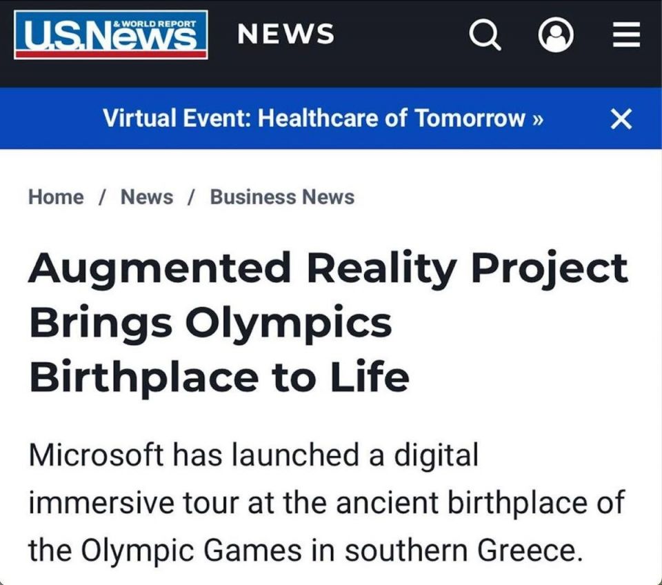 Το έργο που εγκαινιάστηκε στη γενέτειρα των Ολυμπιακών Αγώνων, με τίτλο «Αρχαία Ολυμπία: Κοινός Τόπος», επιτρέπει στους θεατές σε όλον τον κόσμο να εξερευνήσουν την Αρχαία Ολυμπία όπως ήταν πριν από περισσότερα από 2.000 χρόνια μέσω διαδραστικής εφαρμογής για κινητά τηλέφωνα, μέσω περιήγησης στην ψηφιακή μορφή του ιστορικού χώρου σε υπολογιστή, καθώς και μέσω της έκθεσης του Microsoft HoloLens 2, που στεγάζεται στο Ολυμπιακό Μουσείο Αθηνών.