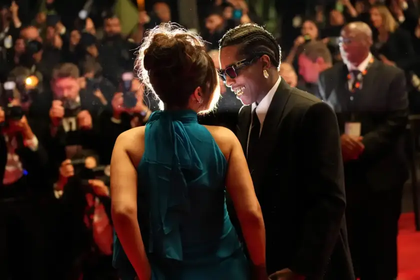 Η Ριάνα, αριστερά, και ο A$AP Rocky ποζάρουν για τους φωτογράφους κατά την αναχώρησή τους από την πρεμιέρα της ταινίας «Highest 2 Lowest» στο 78ο διεθνές φεστιβάλ κινηματογράφου, Κάννες, νότια Γαλλία, 19 Μαΐου 2025.