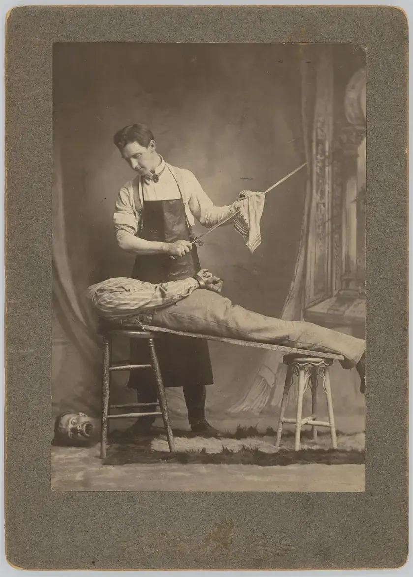 Ακόμη πιο εντυπωσιακή είναι η φωτογραφία «Decapitation» (1880–1900) του FM Hotchkiss, όπου το κεφάλι ενός ανθρώπου φαίνεται να έχει αφαιρεθεί από το σώμα του. Παρότι σήμερα τέτοιες εικόνες θυμίζουν ψηφιακή επεξεργασία, τότε δημιουργούνταν με προσεκτική τοποθέτηση στοιχείων και επιδέξια ρετουσαρίσματα.