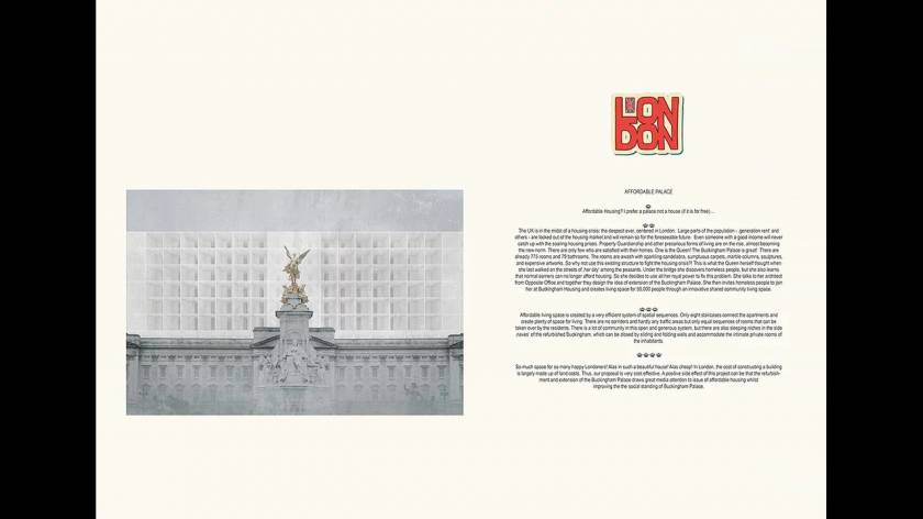Οι εμπνευστές του σχεδίου αυτού έγραψαν και μια ανοιχτή επιστολή στη βασίλισσα, ζητώντας να εξετάσει το ενδεχόμενο να μοιραστεί το παλάτι της με τους λιγότερο τυχερούς συμπολίτες της. Η ιδέα του αρχιτεκτονικού γραφείου -στην εντελώς απίθανη περίπτωση που θα γίνει δεκτή από την Ελισάβετ- θα μετατρέψει το βασιλικό παλάτι σε κατοικίες, ως καινοτόμο λύση για την οικιστική κρίση του Λονδίνου. «Με τα 775 δωμάτια και τα 79 μπάνια, η πυκνότητα του πληθυσμού του Μπάκιγχαμ δεν είναι ακριβώς αντιπροσωπευτική αυτής του υπόλοιπου Λονδίνου», είπε ο συνιδρυτής των Opposite Office, Benedikt Hartl. «Είναι δωμάτια γεμάτα με κηροπήγια, πολυτελή χαλιά, μαρμάρινους κίονες, γλυπτά και ακριβά έργα τέχνης», συνέχισε. «Γιατί να μη χρησιμοποιηθούν για την καταπολέμηση της οικιστικής κρίσης;»