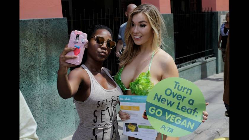 Τα μοντέλα που συμμετείχαν στην εκστρατεία της PETA, της αμερικανικής οργάνωσης υπέρ των δικαιωμάτων των ζώων περπάτησαν και πόζαραν για φωτογραφίες στη διάσημη οδό Ομπίσπο της Αβάνας, δίνοντας στους περαστικούς συμβουλές για το πώς να σώσουν τα ζώα, να είναι υγιείς και να προστατεύουν το περιβάλλον με το να γίνουν χορτοφάγοι.
