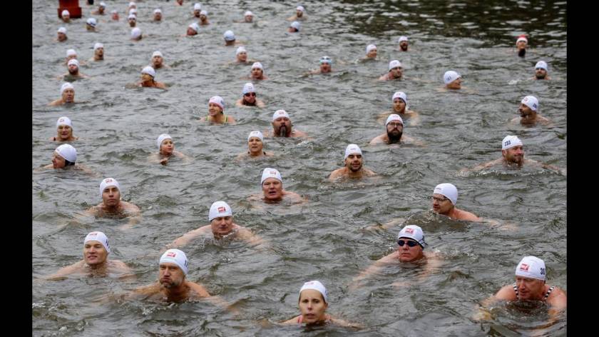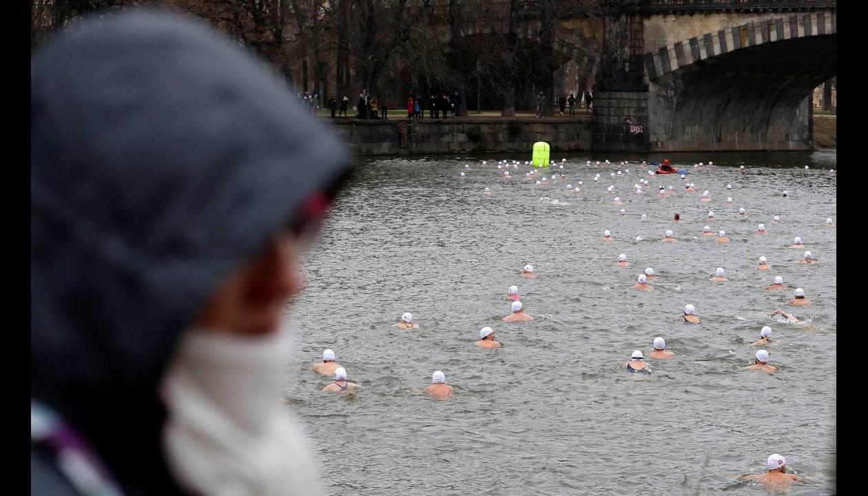 Χειμερινοί κολυμβητές έκαναν θαρραλέες βουτιές την επόμενη των Χριστουγέννων, στον ποταμό Μολδάβα, αγνοώντας πλήρως τη χαμηλή θερμοκρασία.